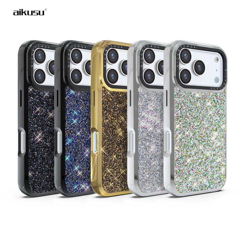 Aikusu High-end Luxury Dazzling Elite Series Mirror Silver Shine Factory Custom Magnetic Phone Case for iPhone 17 16 15 Pro Max