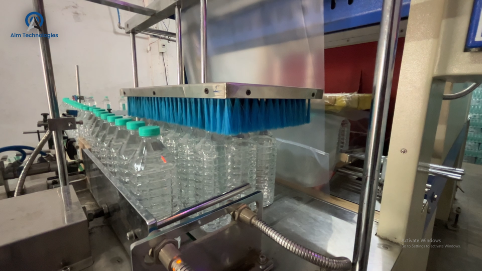 เครื่องห่อฟิล์มหดแบบกึ่งอัตโนมัติ Aim Technologies LDPE ความเร็ว 60 BPM ระบบลม/ไฟฟ้า มือสอง ใช้กับฟิล์ม PE สำหรับอาหาร