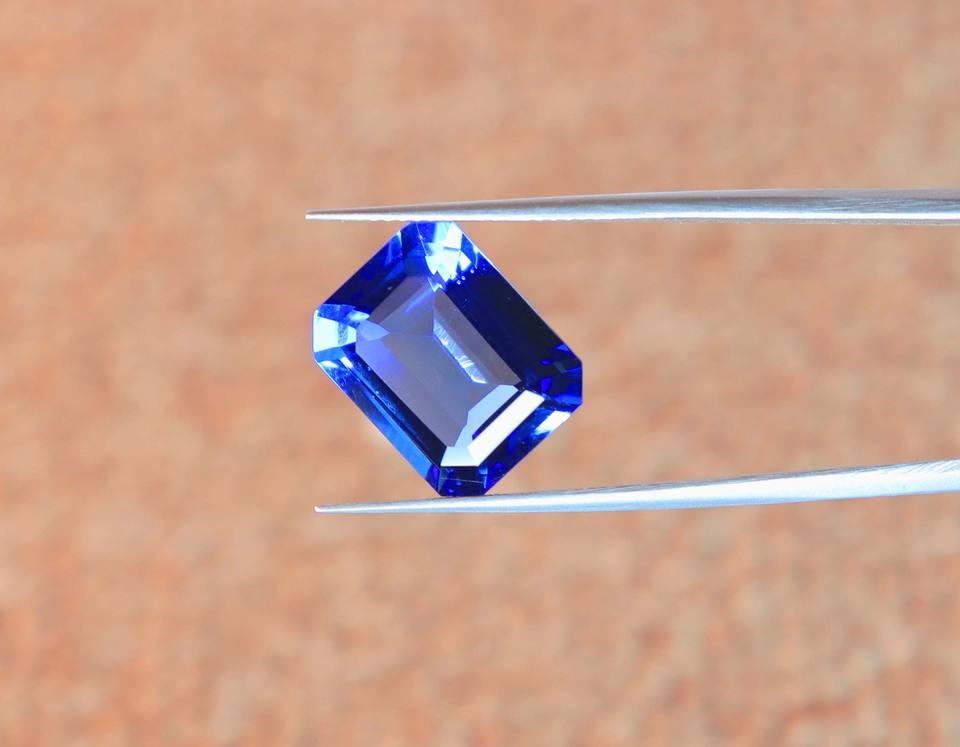 อัญมณีไอนี แล็บ ผลิตพลอยไพลินสีน้ำเงินคุณภาพสูงทรงเหลี่ยมมรกตสำหรับทำเครื่องประดับ