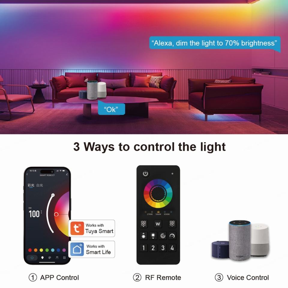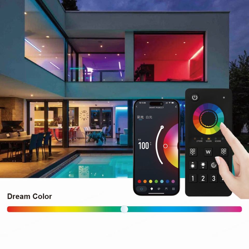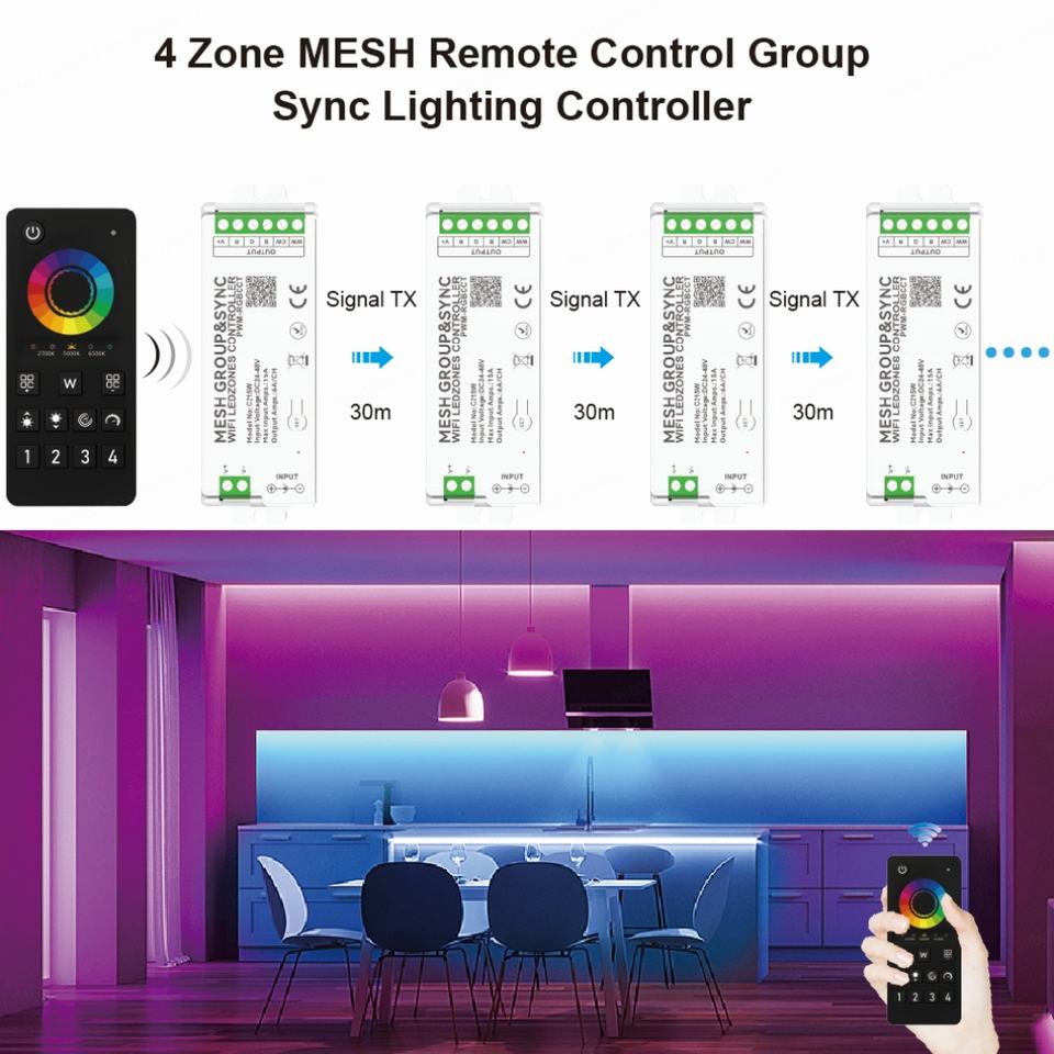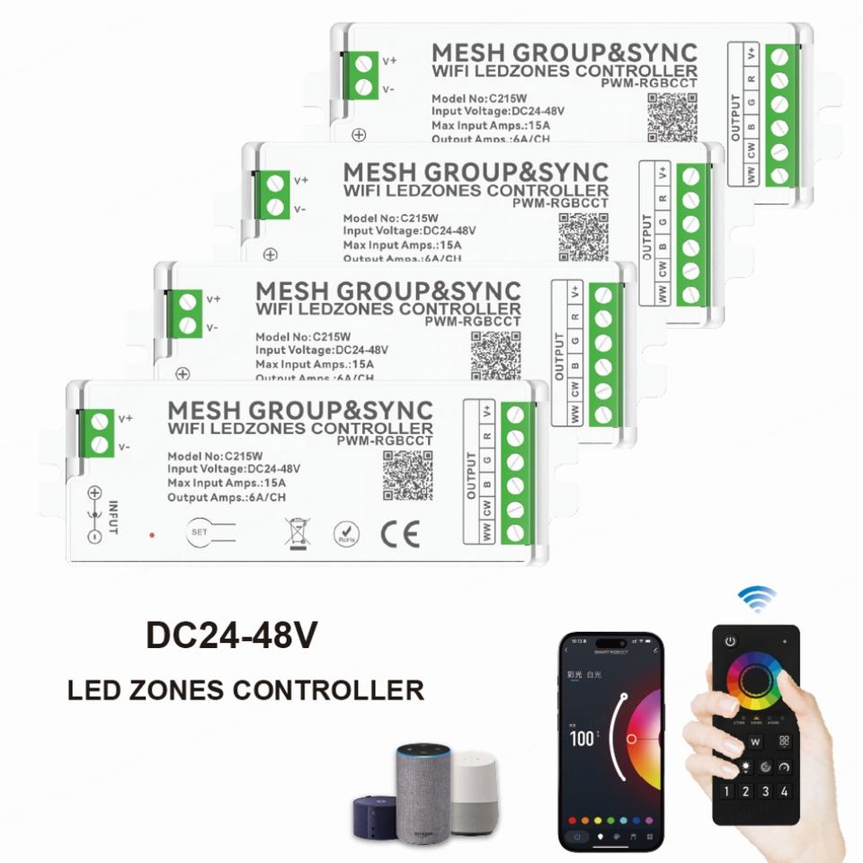 Aipin ไฟ C215W ไวไฟกลุ่มซิงค์4โซน48V 5CH 6PIN cob rgbct LED Strip Light ตัวควบคุม PWM 720W รับประกัน2ปี IP20 30เมตร