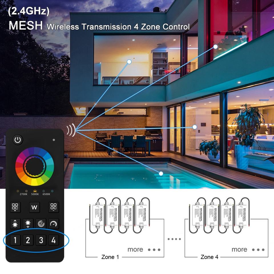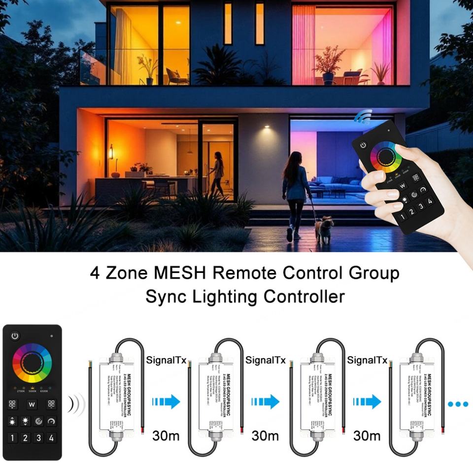 Application:4 Zone MESH Group&Sync Lighting Controller