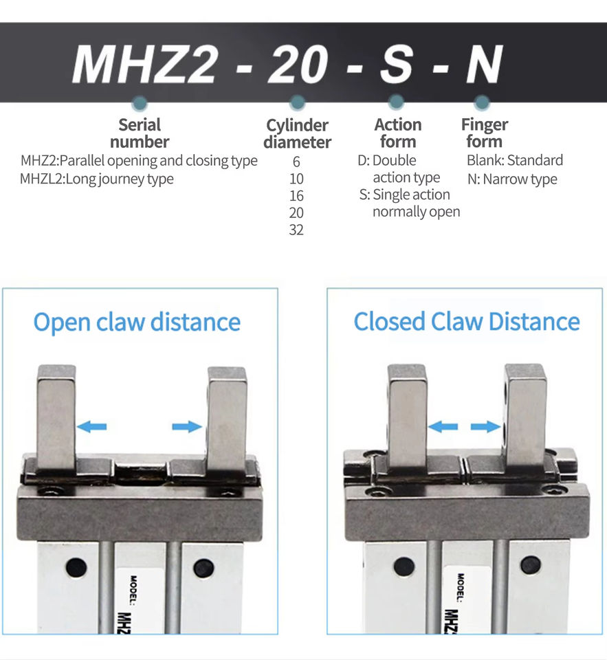 Air Claw MHZ2-6D Robot Gripper Finger 10D-40D Pneumatic Cylinder Parts 16D-32D Mechanical Parallel 20D-25D Pneumatic Cylinder