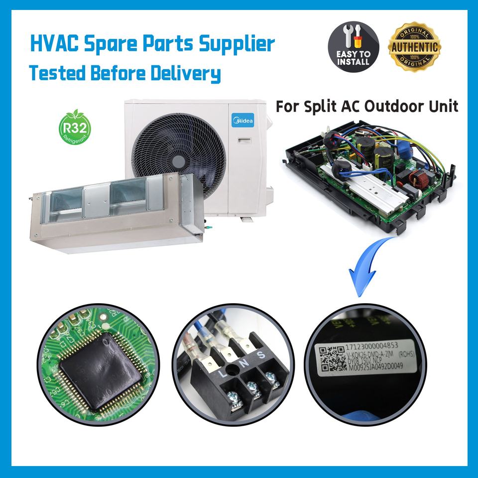 แผงควบคุมหลักภายนอกสำหรับเครื่องปรับอากาศแบบแยกส่วน Midea รุ่น 17123000004853 แผงวงจร PCB อะไหล่ HVAC สำหรับเปลี่ยน