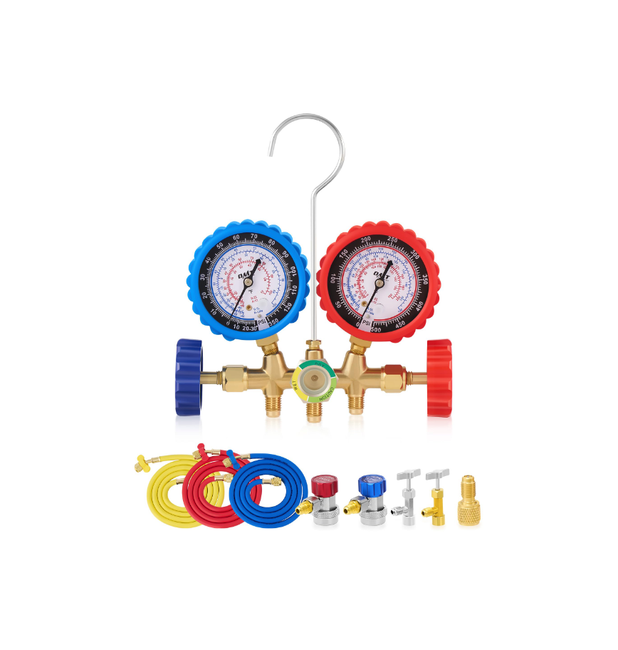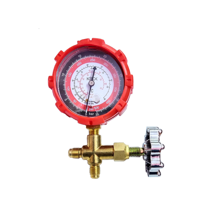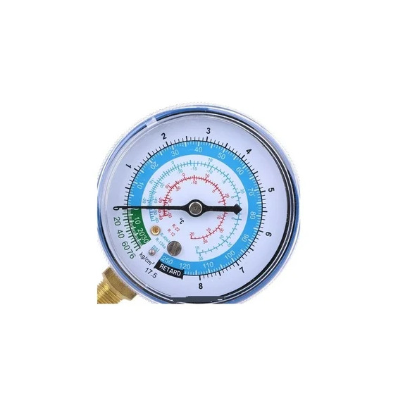 เกจวัดแรงดันเครื่องปรับอากาศพร้อมมาตรวัดอุณหภูมิสำหรับ R22 R134a R404A และ R410A พิมพ์บนหน้าเกจเพื่อการอ้างอิงอย่างรวดเร็ว