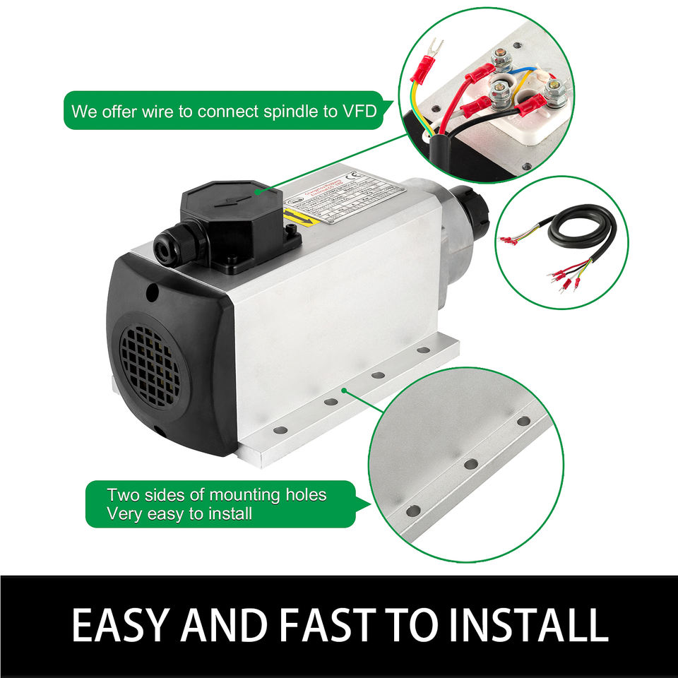 มอเตอร์สปินเดิลความเร็วสูง4KW ER25 4ตลับลูกปืนเซรามิกสำหรับเครื่องแกะสลักเราเตอร์ซีเอ็นซีระบายความร้อนด้วยอากาศ