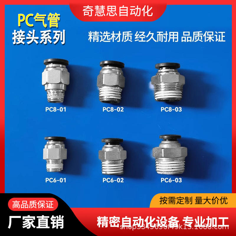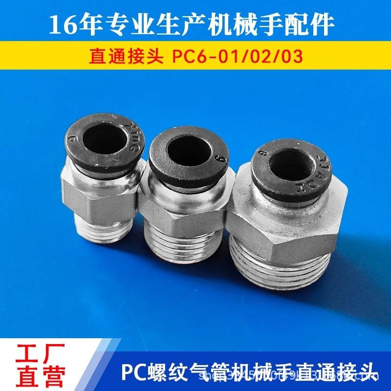ข้อต่อสายลมแบบเร็ว PC6 01 ข้อต่อโลหะแบบตรงสำหรับอุปกรณ์เสริมแขนหุ่นยนต์