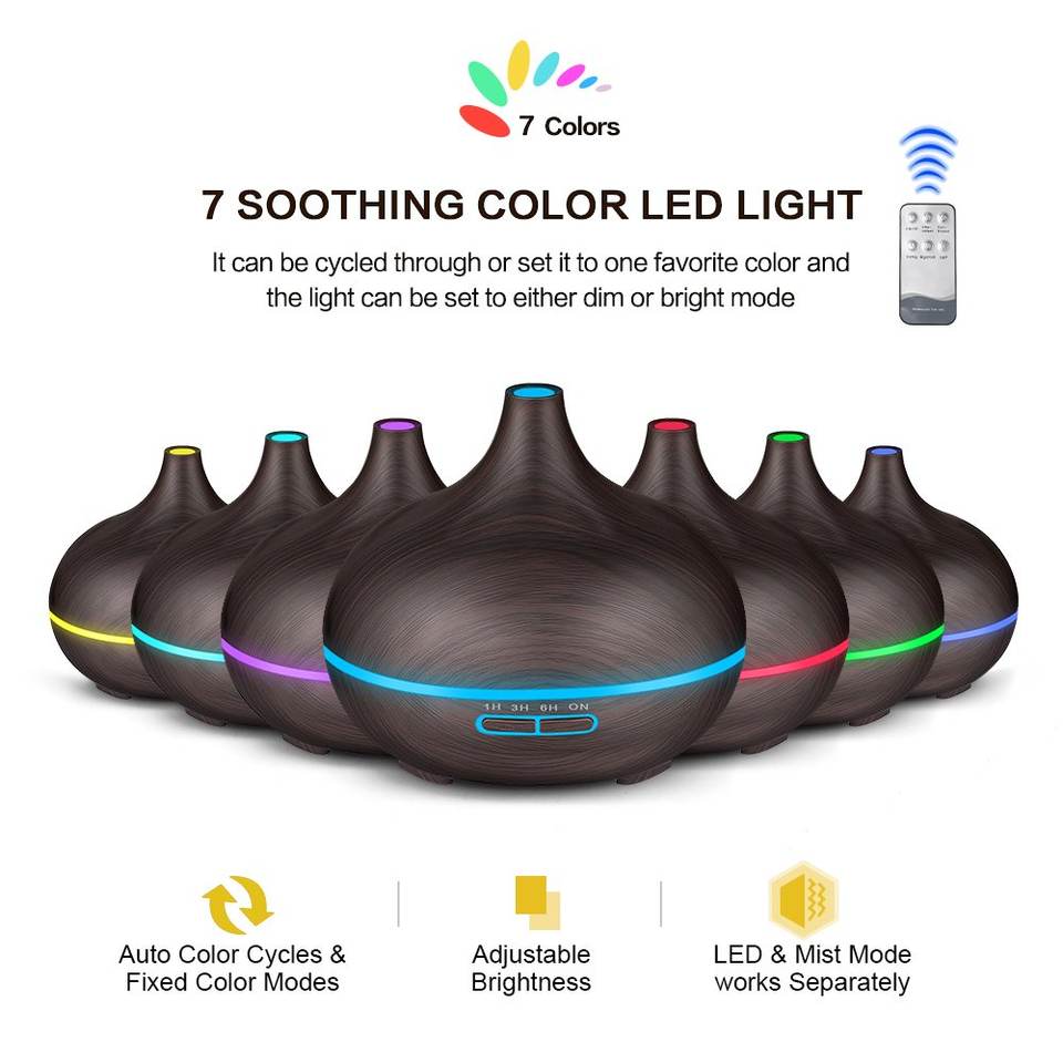 เครื่องเพิ่มความชื้นในอากาศเครื่องกระจายกลิ่นหอมอัลตร้าโซนิคเครื่องกระจายน้ำมันหอมระเหยไฟฟ้ามีไฟ LED 7สีสำหรับน้ำมันหอมระเหยในบ้าน