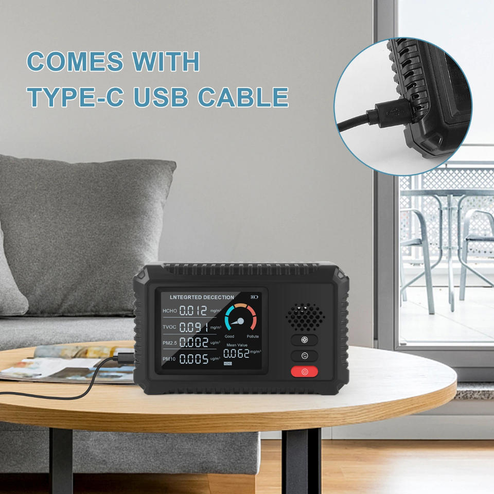 เครื่องตรวจวัดคุณภาพอากาศ คาร์บอนไดออกไซด์ PM2.5 TVOC เครื่องตรวจจับฟอร์มาลดีไฮด์