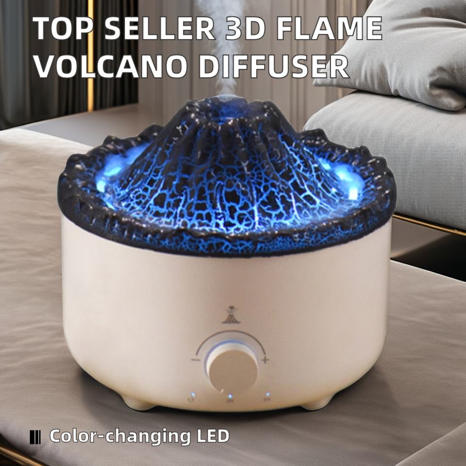 เครื่องเพิ่มความชื้นในอากาศแบบวงแหวนควัน รูปภูเขาไฟ กระจายกลิ่นหอม ขายดี ไฟสองสี เครื่องพ่นไอน้ำอัลตราโซนิก 3 มิติ พกพา ใช้พลังงาน USB สำหรับบ้านและรถยนต์ 1