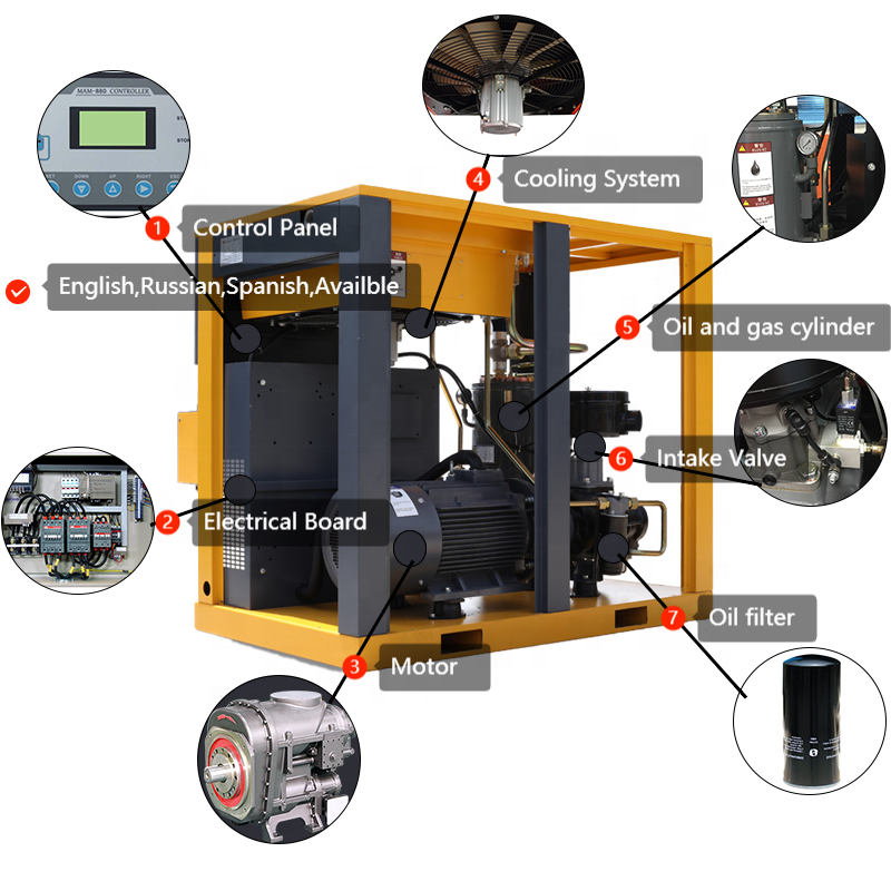 Airhorse เครื่องอัดอากาศแบบสกรูความเร็วคงที่50HP 37KW 8บาร์10บาร์