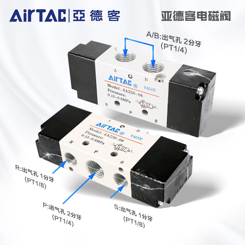 วาล์วควบคุมลม AirTac 4A210-08/4A220-08/4A230-08/4A110-06/3A210 สำหรับสื่อแก๊ส OEM ปรับแต่งได้