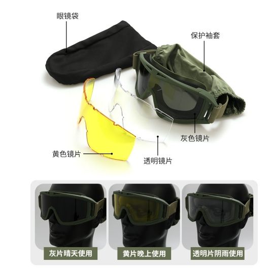 แว่นตาป้องกันแบบยุทธวิธีสำหรับแอร์ซอฟต์ ป้องกันฝ้า สำหรับการล่าสัตว์ ปั่นจักรยาน กีฬาชายหาด