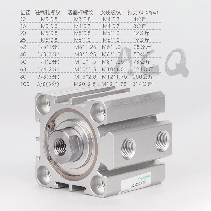 กระบอกลมแบบบาง Airtac รุ่น S-Type ขนาด ACQ12/16/20/25/32/40/50X5X10X15X20X25X40X50 อุปกรณ์อุตสาหกรรมสำหรับท่อลมและตัวกรอง