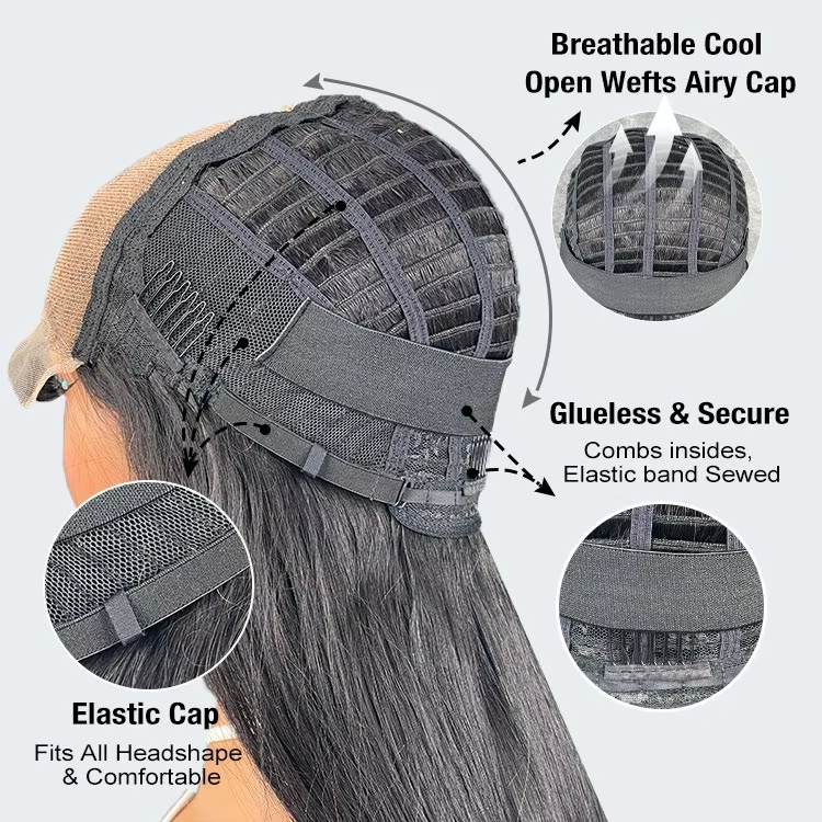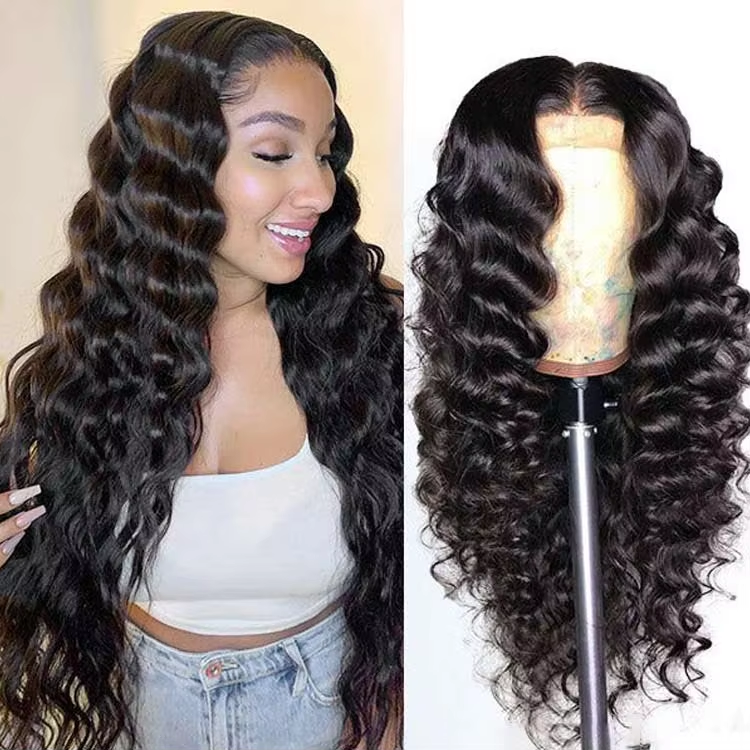 วิกผมแบบหลวมลึกไม่มีกาวพร้อมหมวกวิกผมโปร่งสบาย