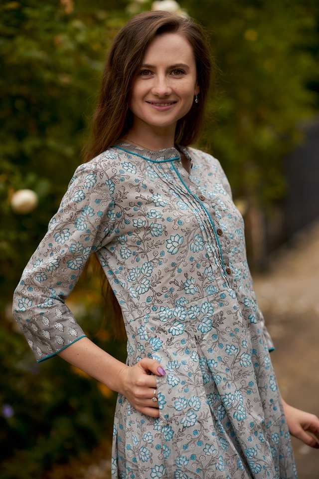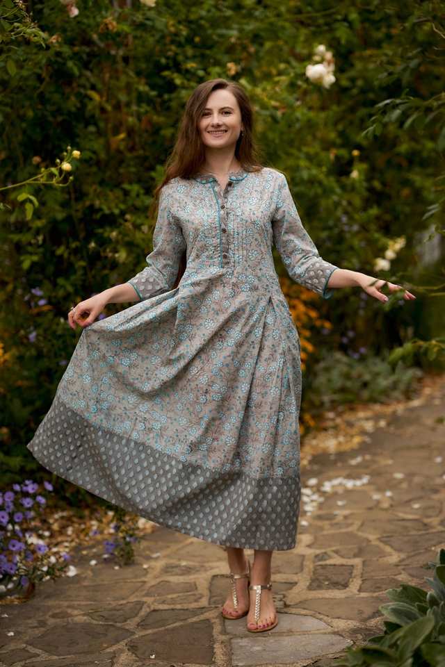 ชุดเดรสผ้าฝ้ายพิมพ์ลายด้วยมือทรงเอไลน์สไตล์โบฮีเมียนสำหรับวันหยุดของไอชวารี