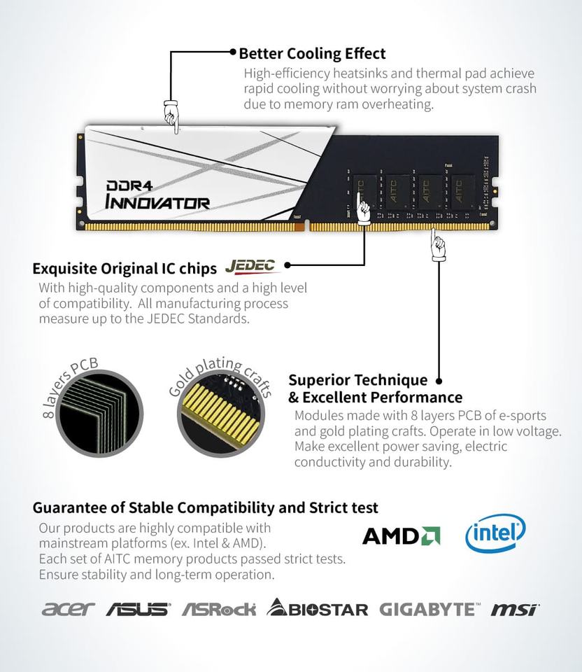 Aitc Kingsman memoria 16GB DDR4 3200MHz RAM สำหรับเล่นเกมตั้งโต๊ะ
