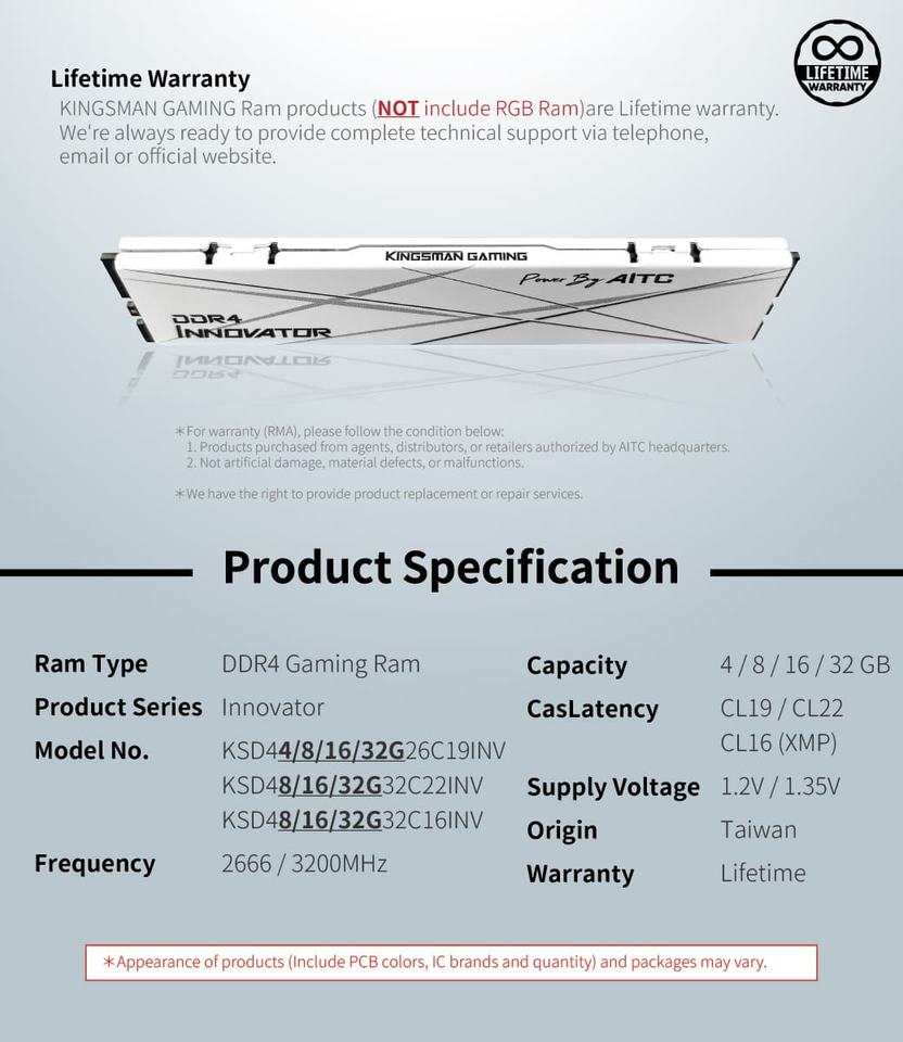 Warranty:Lifetime (AITC) / 1 Year (OEM)