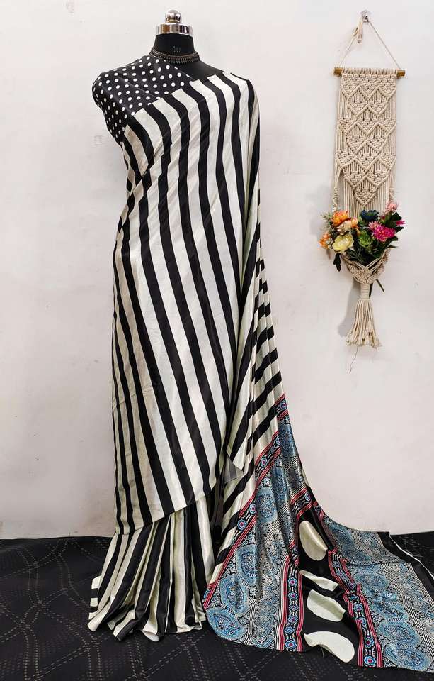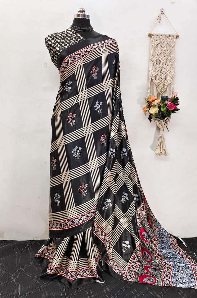 Ajrakh printed semi gajji modal crepe Wholesale saree supplier in Gujarat
