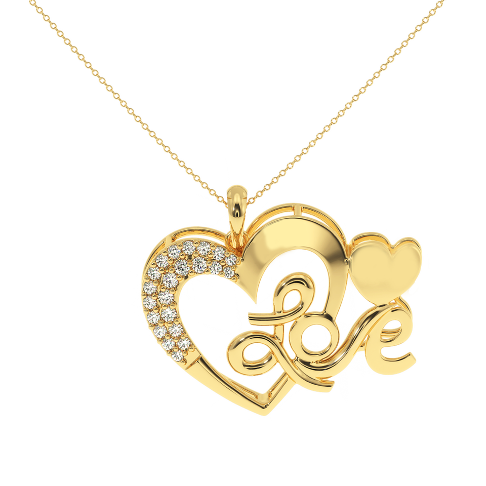 จี้เพชรแท้ 0.19 กะรัต รูปหัวใจสลักลายคำว่า Love สีเหลืองทอง รับรองโดย IGI ทรงกลมเจียระไนแบบ Brilliant Cut ของขวัญสำหรับทุกเพศ