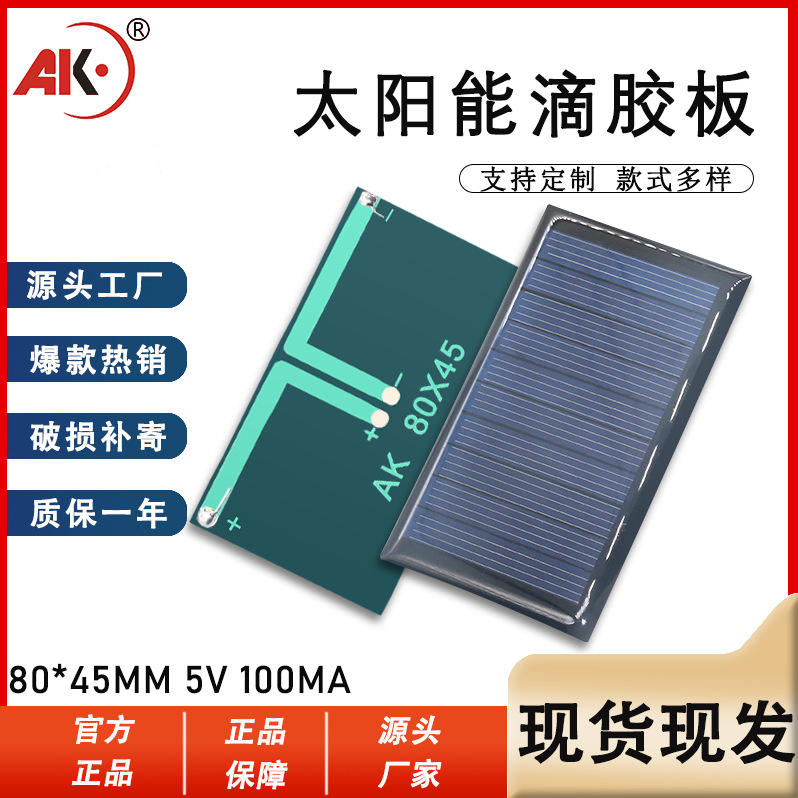 แผงโซลาร์เซลล์โพลีคริสตัลไลน์ Ak 80X45 5V 100mA แผ่นอีพ็อกซี่โฟโตโวลตาอิกสำหรับการชาร์จแบตเตอรี่แบบชาร์จซ้ำได้