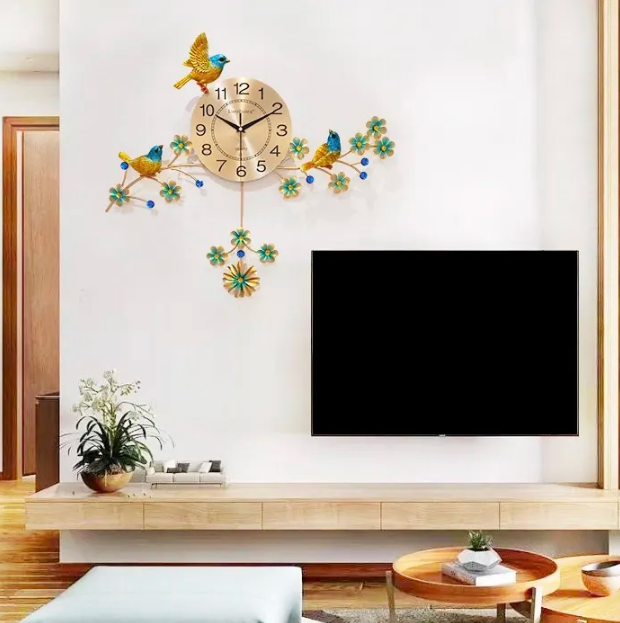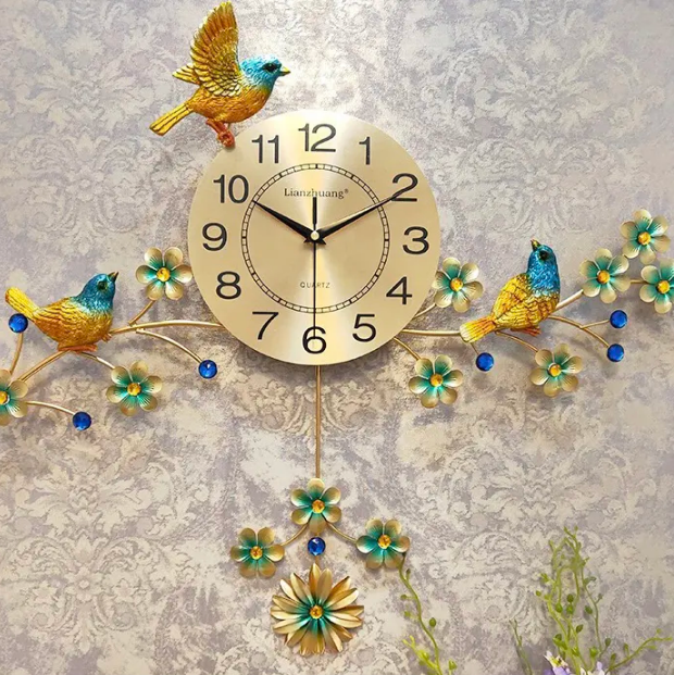 นาฬิกาแขวนผนังสไตล์โมเดิร์นทำจากโลหะรูปนกยูงเงียบสำหรับโรงแรมอเมริกันนาฬิกาตกแต่งบ้าน