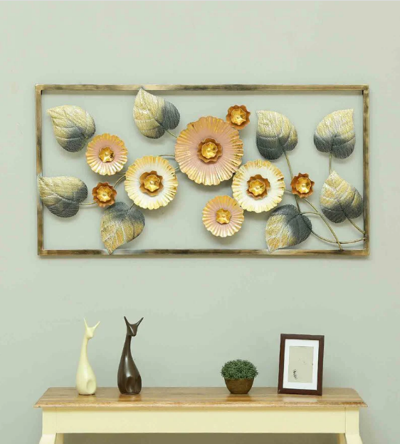 Ak ทองเหลืองทองและสีเขียวเหล็กแบบดั้งเดิมตกแต่งผนังดอกไม้โลหะผนังกรอบศิลปะและโลหะแขวนผนัง