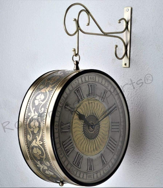 AK นาฬิกาติดผนังสำหรับคาเฟ่สถานีรถไฟสองด้านทำจากโลหะเงินสไตล์เยอรมัน