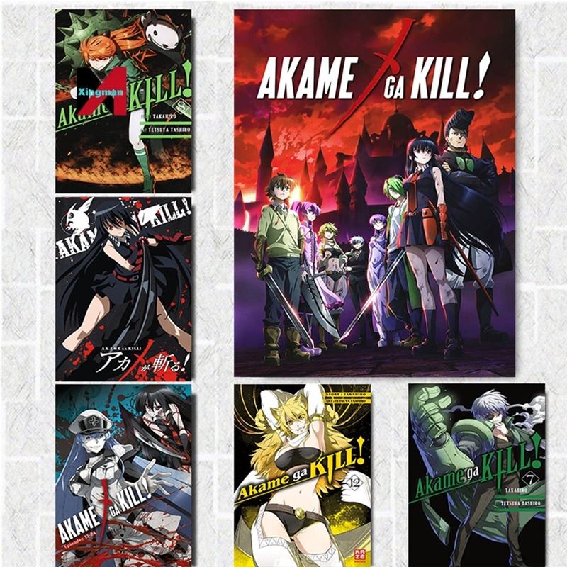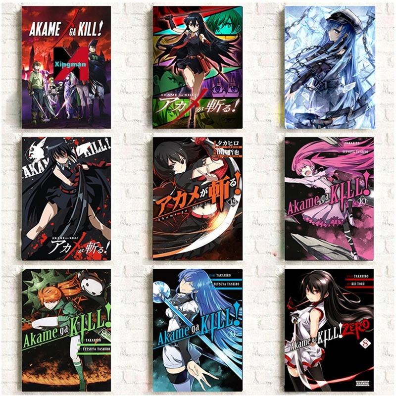 โปสเตอร์อะนิเมะ AKAME GA Kill โปสเตอร์ติดผนังภาพจิตรกรรมฝาผนังศิลปะผ้าใบพิมพ์สำหรับตกแต่งห้องการ์ตูนญี่ปุ่นตัวละครการ์ตูนญี่ปุ่นชุดอนิเมะ