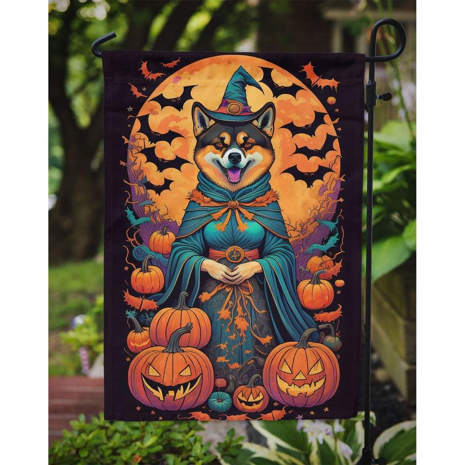 Akita witchy ธงสวนฮาโลวีนหลากสีสำหรับตกแต่งลานกว้างธงงานศิลปะสำหรับเตียงดอกไม้ขนาดสวน