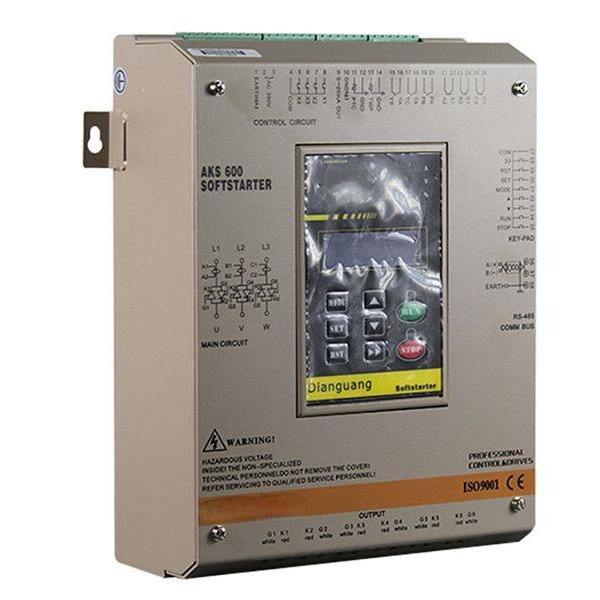 ซอฟต์สตาร์ทเตอร์ Aks 600 สำหรับมอเตอร์ไฟฟ้ากระแสสลับ 400 โวลต์ พร้อมระบบป้องกันด้วยไมโครคอมพิวเตอร์ ระดับ IP20