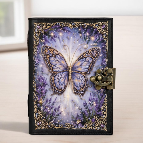 Lavender Butterfly printed Leather Journal Fantasy hardcover Notebook