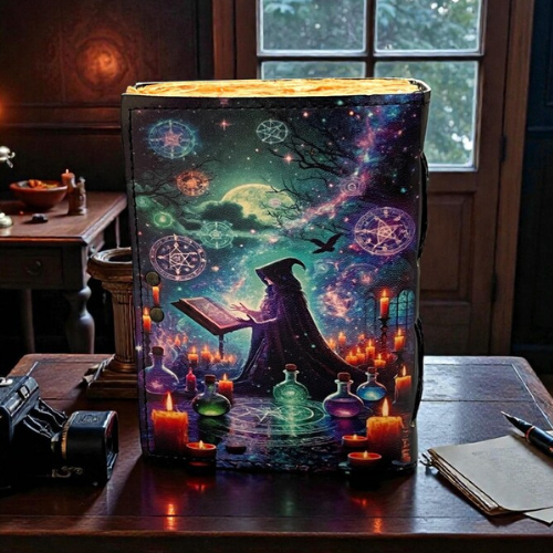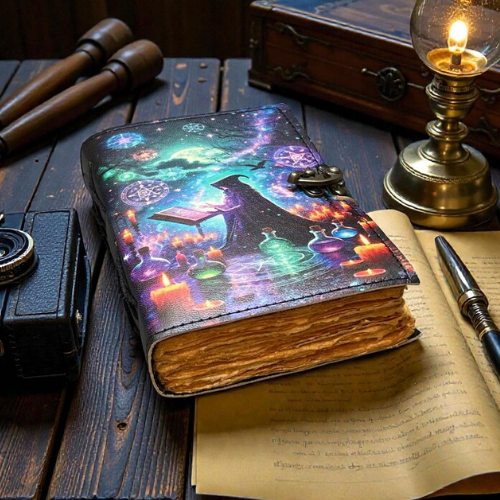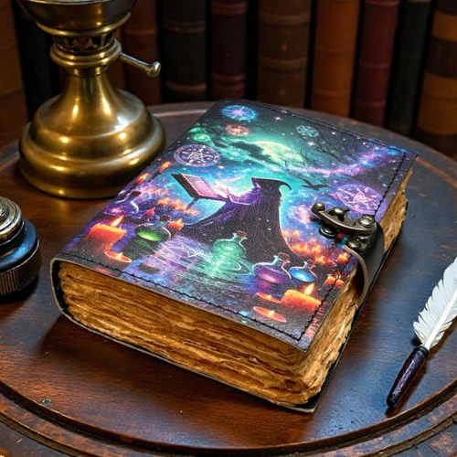 สมุดบันทึกหนังทำมือของอัล-อะมีร์ สำหรับเวทมนตร์ พ่อมด แม่มด สมุดคาถา โกธิค กริโมแวร์ วินเทจ คลาสสิก สำหรับการอ่านเรื่องเวทมนตร์และลัทธิลึกลับ