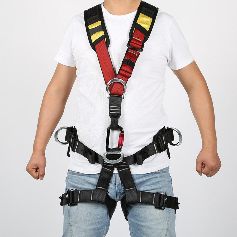 ชุดสายรัดนิรภัยอัล-นาสเซอร์ ปรับได้สำหรับส่วนบนของลำตัว ทำจากโพลีเอสเตอร์ พร้อมห่วงรูปตัว D สำหรับปีนหน้าผา ป้องกันการตก
