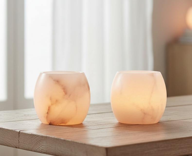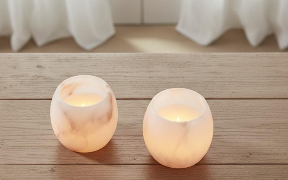 ที่ใส่เทียนชาอะลาบาสเตอร์ (ชุด 2 ชิ้น) | ชุดเชิงเทียนหินธรรมชาติ ชุดสองชิ้น ที่วางเทียนอะลาบาสเตอร์