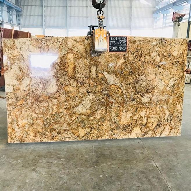 กระเบื้องหินแกรนิตสีทองคุณภาพระดับพรีเมี่ยมดีไซน์ทันสมัยพร้อมพื้นผิวขัดเงาและเปลวไฟสำหรับห้องครัวห้องน้ำและใช้งานกลางแจ้ง