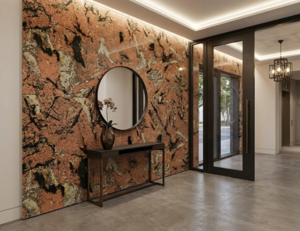 แผ่นหินแกรนิตขัดเงาสีแดงอลาสก้า ดีไซน์ทันสมัย สำหรับใช้ตกแต่งห้องนอน ห้องครัว บันได และผนัง