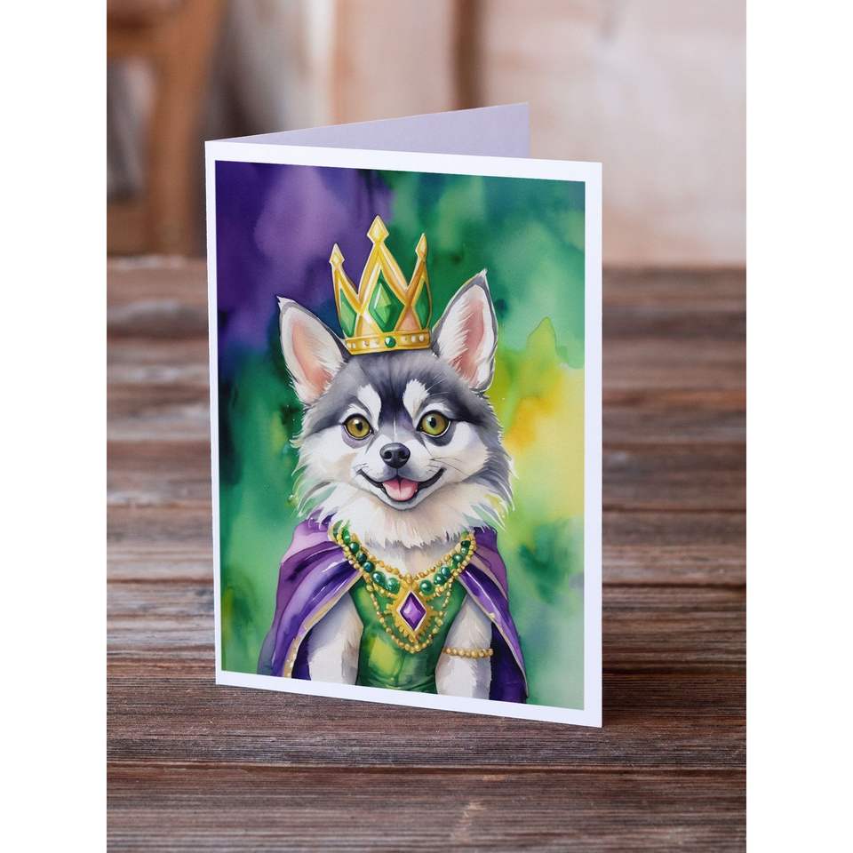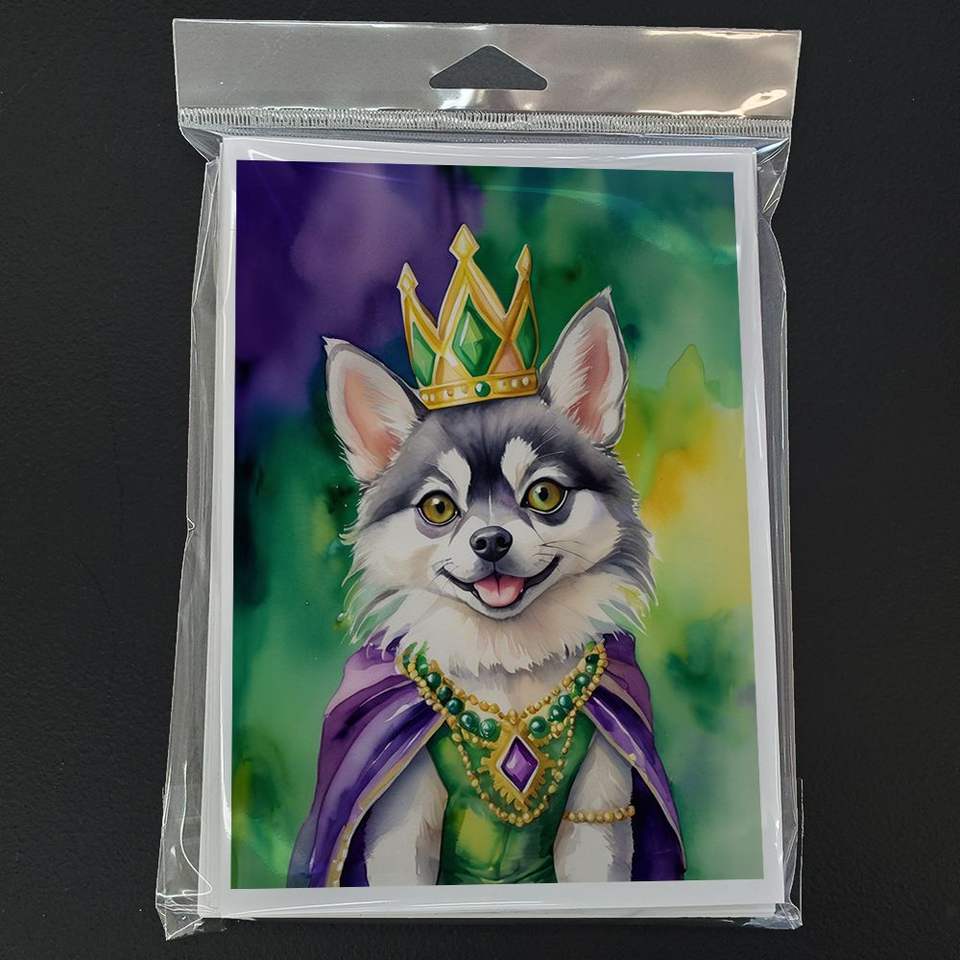 อลาสกัน Klee Kai King of Mardi Gras แปลกๆการ์ดอวยพร A7แพ็ค8การ์ดเปล่าพร้อมซองขนาด5x7