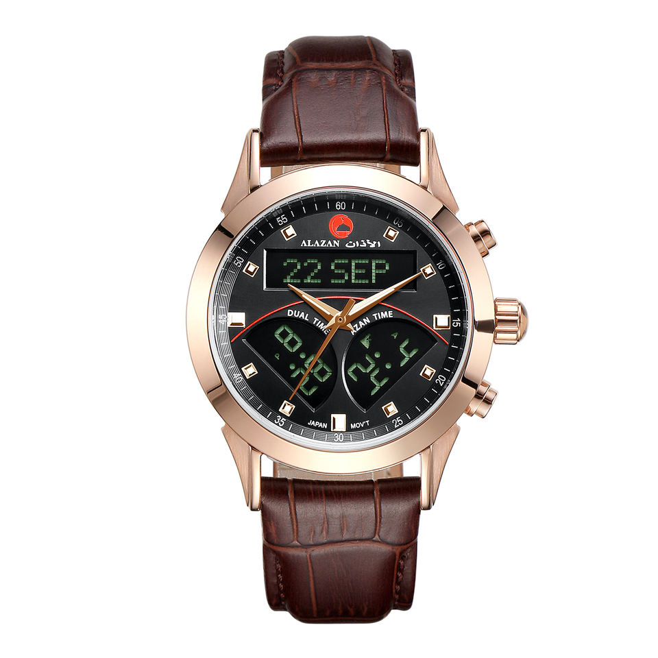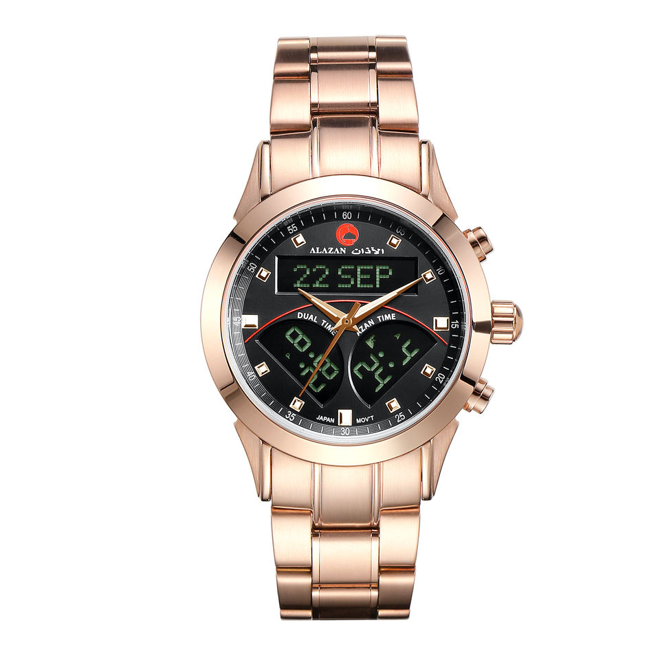 นาฬิกาข้อมือกันน้ำพร้อมเข็มทิศกิบลัตสำหรับละหมาด ทำจากสแตนเลส สำหรับชาวมุสลิม อิสลาม อลาซาน อัลฟัจร์ พร้อมฟังก์ชั่นบอกทิศกิบลัตและเวลาละหมาด