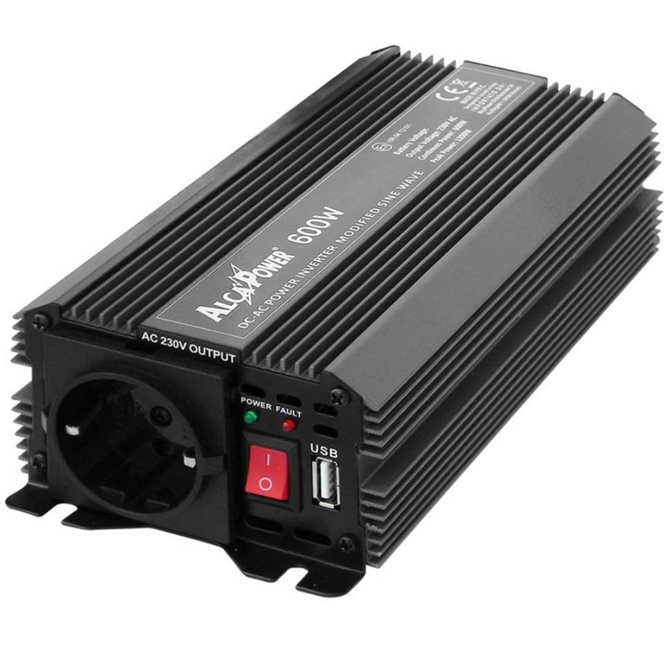 อินเวอร์เตอร์ Alcapower 600W DC เป็น AC แบบ Modified Sine Wave แรงดันไฟฟ้าเข้า 24V แรงดันไฟฟ้าออก 230V สำหรับยานยนต์ ระบบเฟสเดียว 50Hz