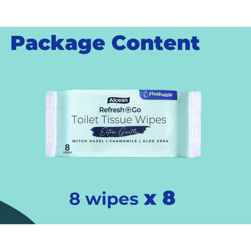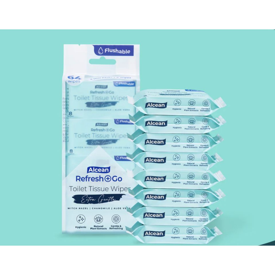 อัลซีแอน ทิชชู่เปียกแบบใช้แล้วทิ้งในโถสุขภัณฑ์ - 8 แผ่น (แพ็ค 8 ชิ้น)