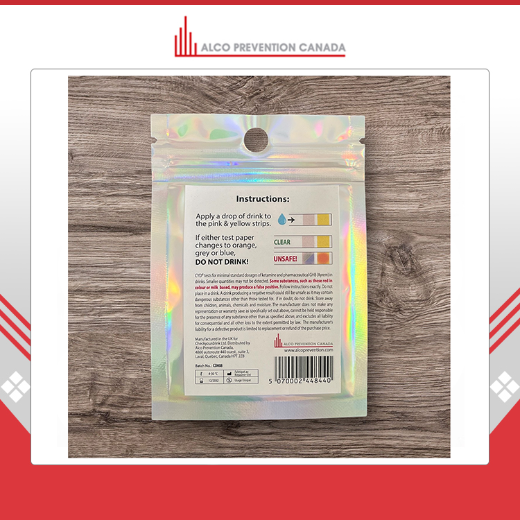 ผู้จัดจำหน่าย Alco Prevention Canada สำหรับชุดตรวจจับการเติมสารเคมีในเครื่องดื่มคุณภาพสูง ความแม่นยำสูง 97% สำหรับแบบซอง