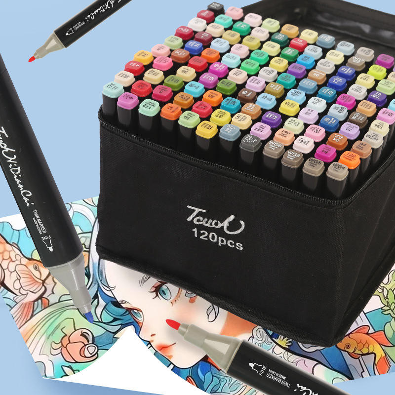 ปากกาเมจิกสองหัวชนิดแอลกอฮอล์ ชุดปากกาเพ้นท์ถาวร แบบกำหนดเอง 24 30 36 40 48 60 80 สี ปากกาสเก็ตช์สำหรับนักเรียน