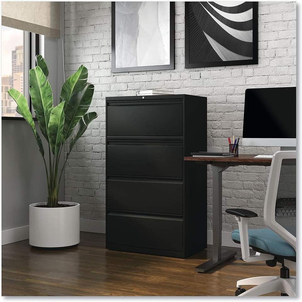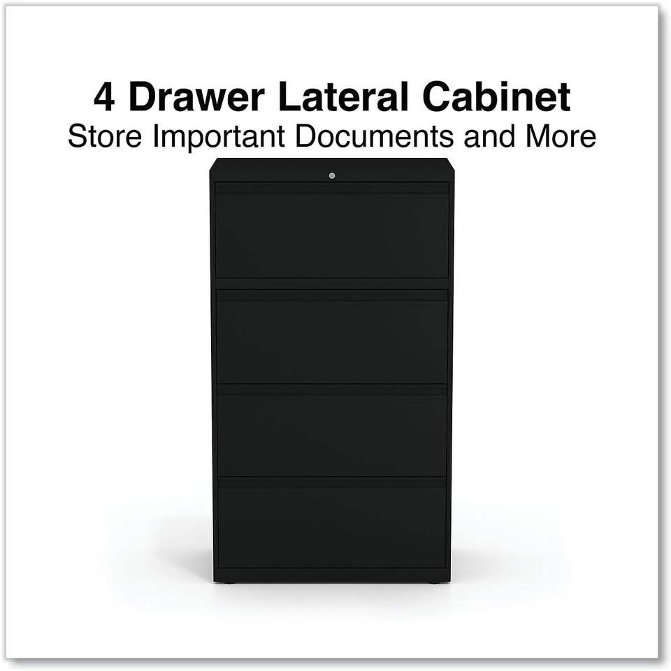 ตู้เก็บเอกสารโลหะสีดำ 4 ชิ้น ยี่ห้อ Alera ขนาด 30 นิ้ว x 18.63 นิ้ว x 52.5 นิ้ว พร้อมลิ้นชักเก็บเอกสารขนาด Legal/Letter 4 ช่อง
