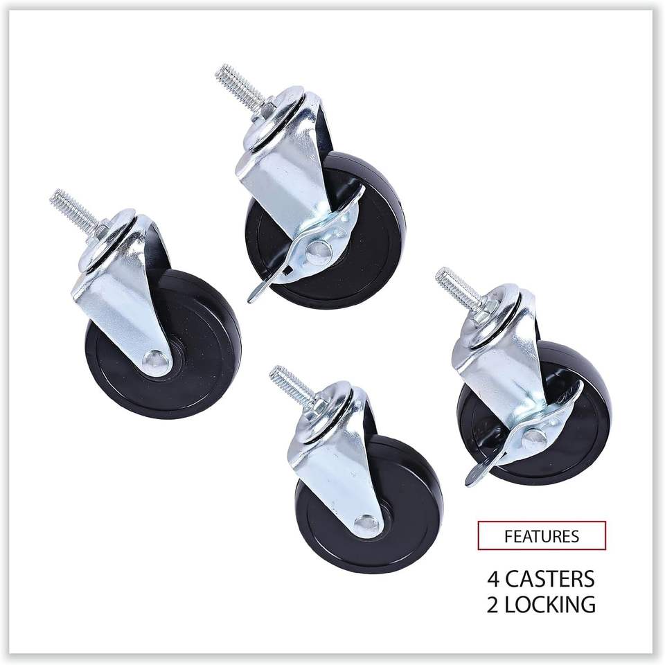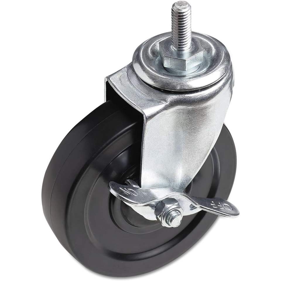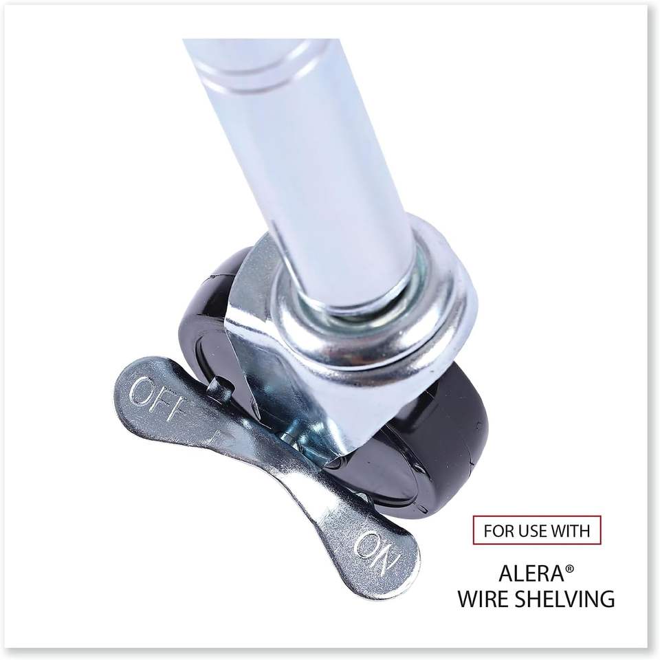 ล้อเลื่อนอเลราสำหรับชั้นวางของแบบลวด ชุด 4 ชิ้น รับน้ำหนักได้ 125 ปอนด์ ล้อเลื่อนยางสีดำพร้อมเบรกสำหรับใช้งานกลางแจ้ง อุตสาหกรรม และโรงพยาบาล