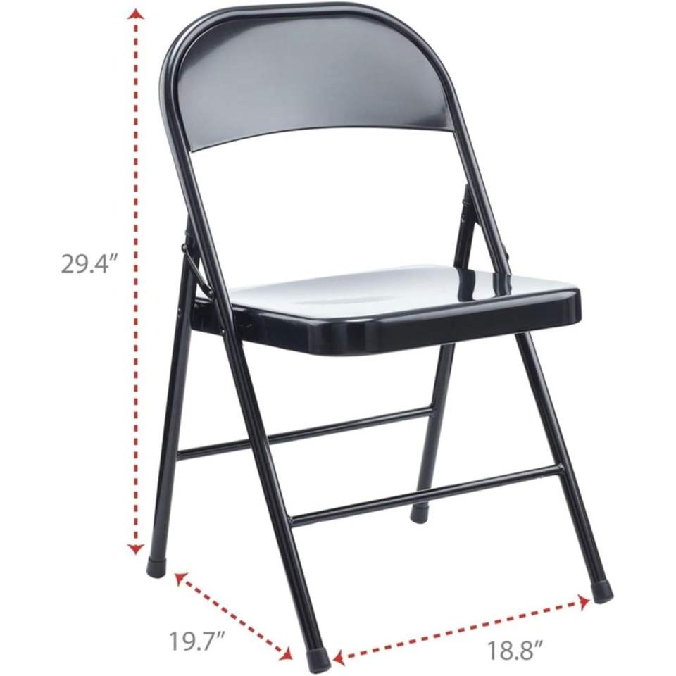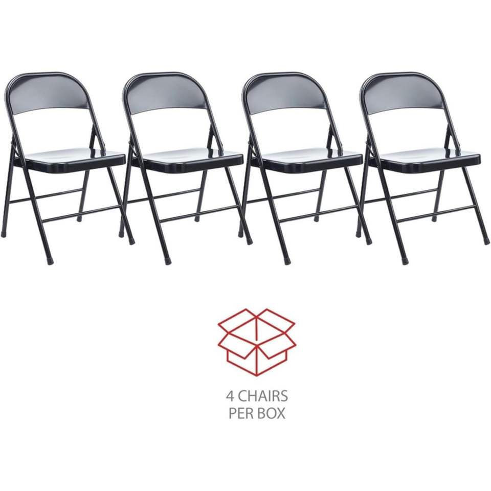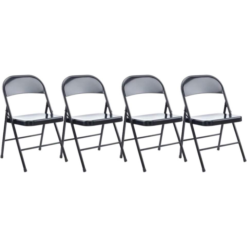 เก้าอี้พับเหล็กไร้แขนสีดำรุ่นอเลร่าร่วมสมัยพร้อมฐานพนักพิงสีดำ รับน้ำหนักได้ 275 ปอนด์ บรรจุ 4 ตัว/กล่อง ทำจากโลหะ