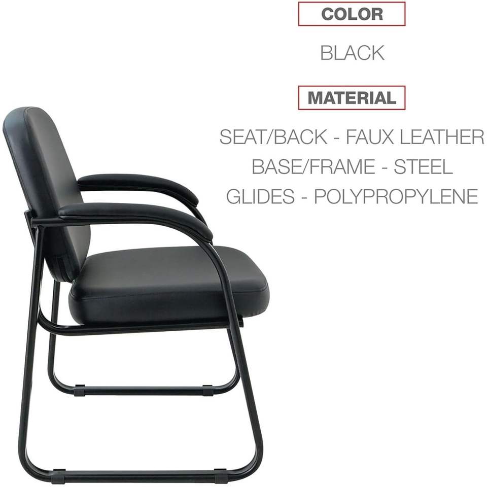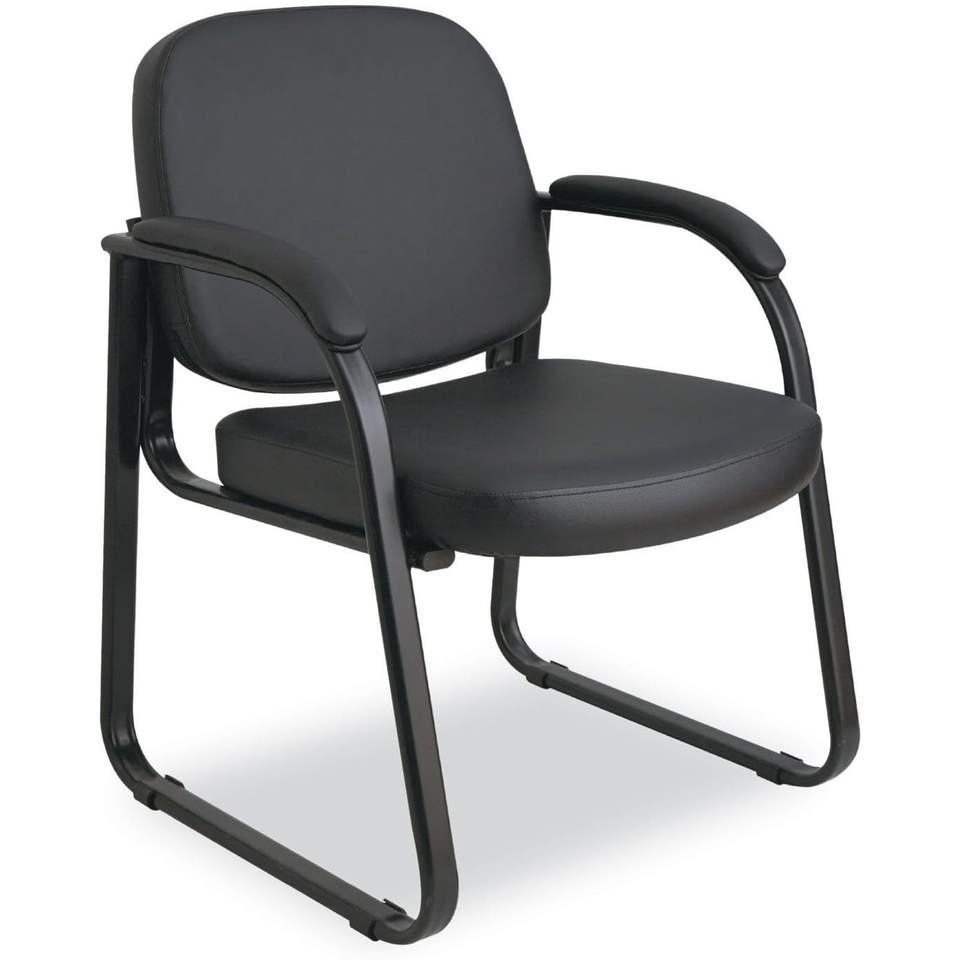 เก้าอี้รับแขกแบบครึ่งพนักพิงหนังเทียมสีดำ รุ่น Alera Genaro ขนาด 25 นิ้ว x 24.80 นิ้ว x 33.66 นิ้ว ฐานแบบ Sled พร้อมฐานพนักพิงสีดำ