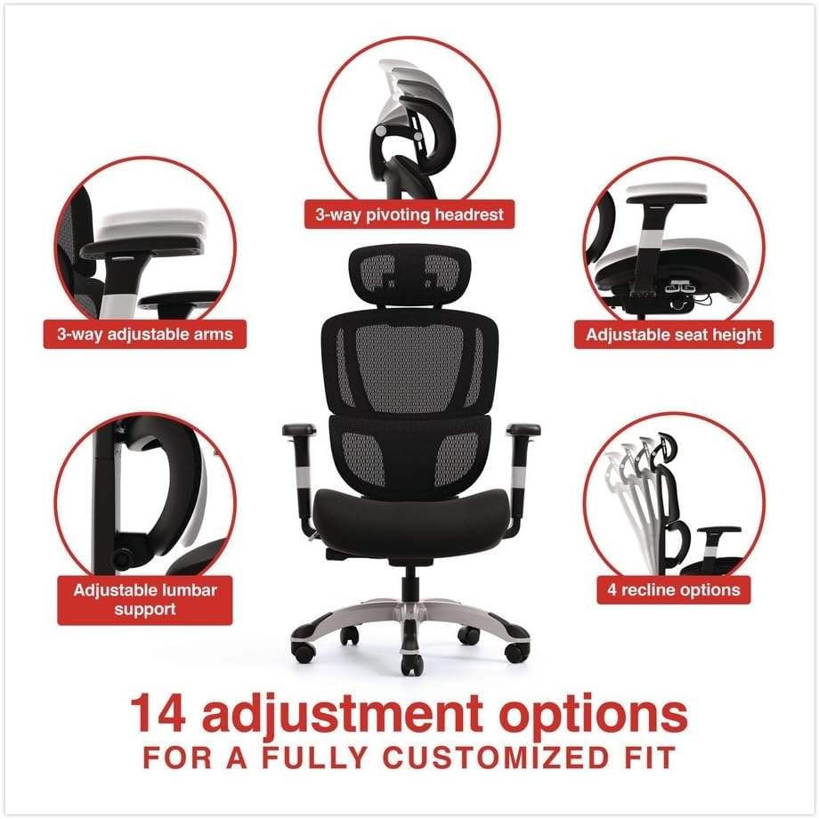 เก้าอี้อเนกประสงค์อเลรา มินเวอร์วา โปรรองรับน้ำหนักได้ 275 ปอนด์ 17.7" 21.4" ความสูงที่นั่งสีดำ พนักพิงสีดำ ฐานเหล็กสีดำ ผ้า