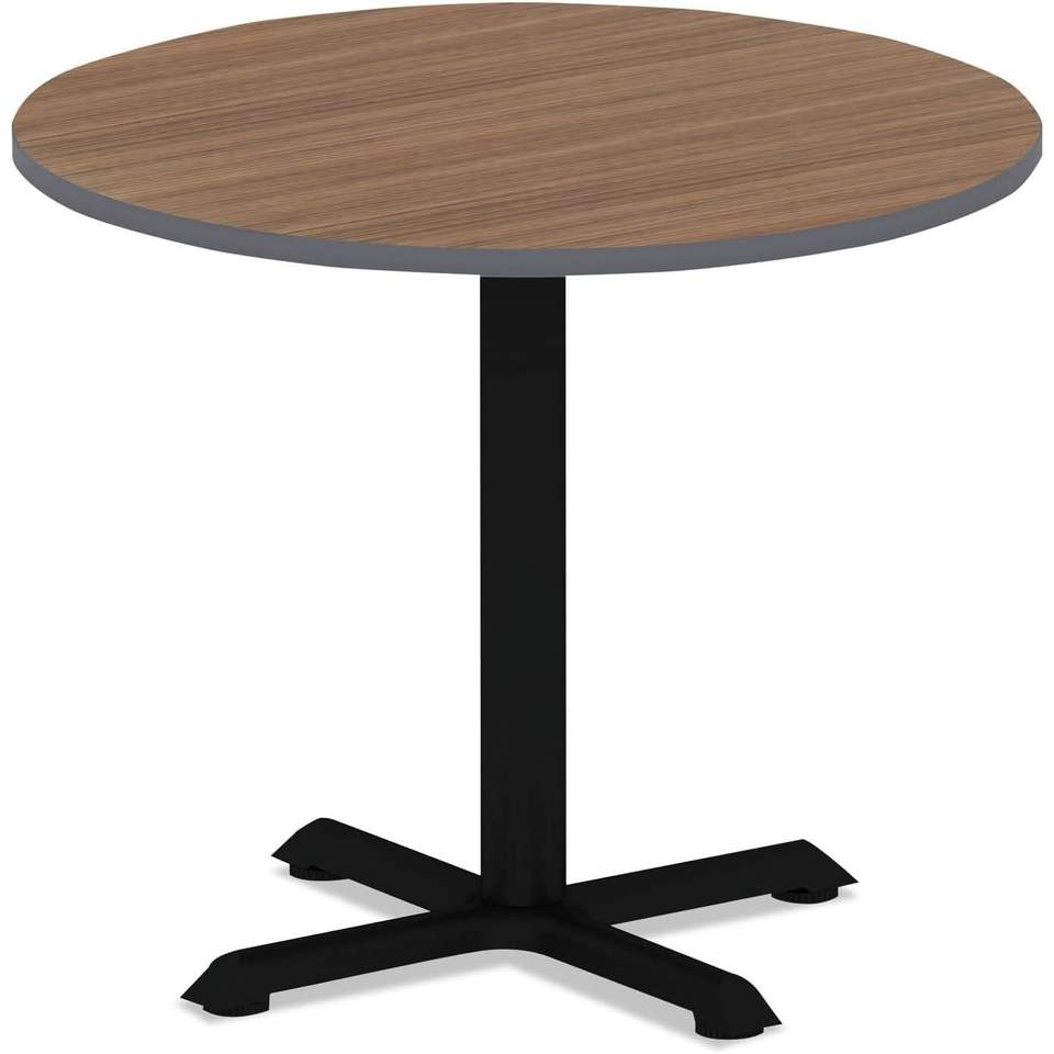 ท็อปโต๊ะทรงกลมเคลือบลายไม้เอสเพรสโซ/วอลนัทแบบพลิกกลับได้ของอเลรา เส้นผ่านศูนย์กลาง 35.5 นิ้ว สำหรับโต๊ะรับประทานอาหาร