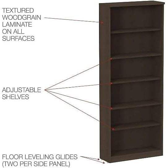 อเลรา วาเลนเซีย ซีรีส์ตู้หนังสือ 6 ชั้น สีเอสเพรสโซ ไม้ 31 3/4" กว้าง x 14" ลึก x 80 3/8" สูง