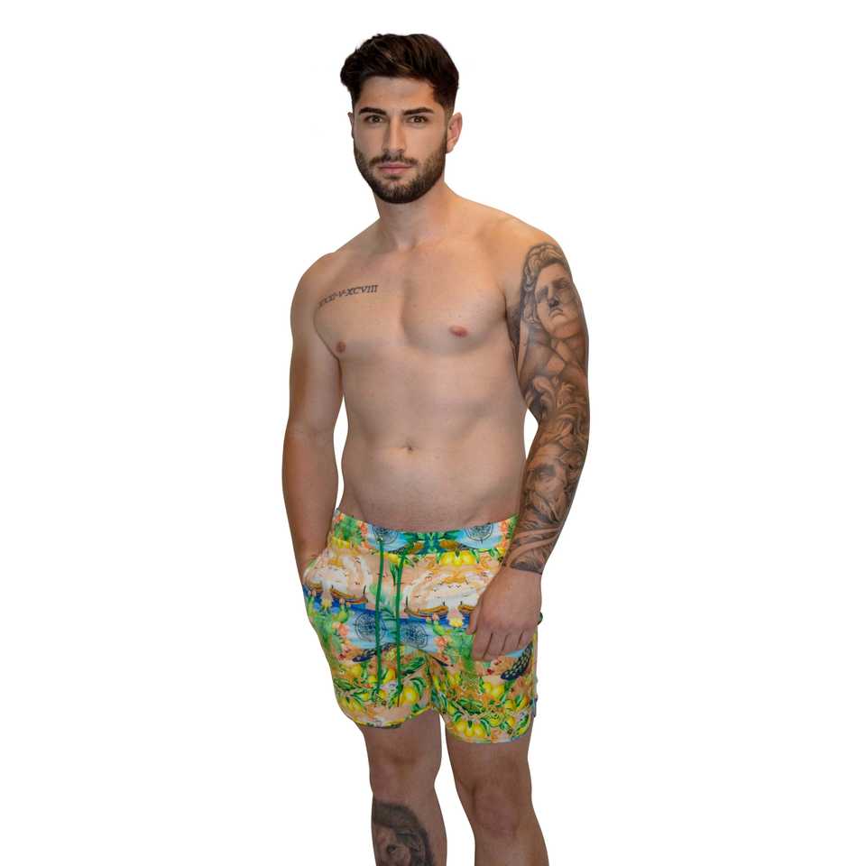 Alessandro luzzu กางเกงว่ายน้ำยาวปานกลางพิมพ์ลายกางเกงขาสั้นและกางเกงว่ายน้ำ